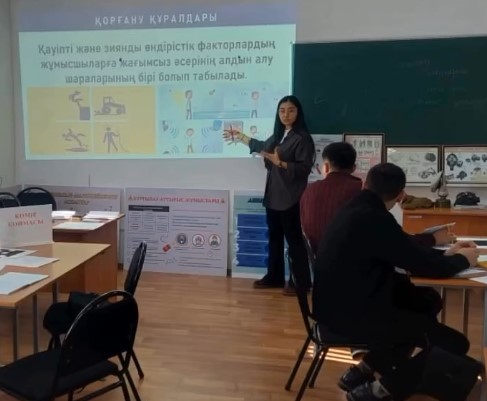 02.03.2026 жылы Әбілқас Сағынов атындағы Қарағанды техникалық университеті Инновациялық технологиялар колледжі «Еңбекті қорғау» пәні бойынша «Өндірістік санитария бөлімі, Жеке және ұжымдық қорғану құралдары» тақырыбында ашық сабақ өткізілді. Сабақ КОРМПИ 11/24-2к тобының білім алушыларымен ұйымдастырылды.