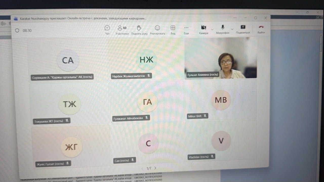 Кездесуге университеттің факультет декандары, бітіруші кафедра меңгерушілері және 6 факультеттің бітіруші студенттері қатысты. Кездесу Microsoft Teams платформасында өтті.
