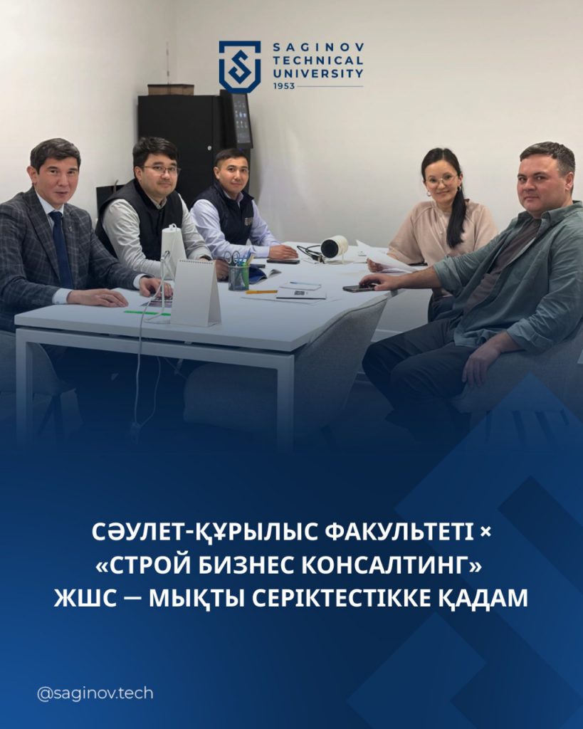 Оған сәулет-құрылыс факультетінің деканы Данияр Тоқанов, «Құрылыс материалдары және технологиялар» кафедрасының меңгерушісі Еділ Иманов, «Сәулет және дизайн» кафедрасының меңгерушісі Бейбіт Ахметов қатысты. «Строй Бизнес Консалтинг» ЖШС директоры Евгений Хен университетпен өзара тиімді байланыстарды одан әрі дамыту мен нығайтуды жақтады. Және Әрі қарай оқу …