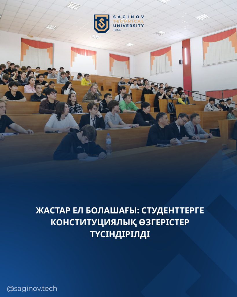 В Карагандинском техническом университете имени Абылкаса Сагинова продолжаются встречи со студентами, посвящённые разъяснению положений обновлённой Конституции Республики Казахстан. Очередное мероприятие прошло со студентами факультета металлургии и машиностроения. В нём также приняли участие декан факультета Астра Макашева и преподаватели. На встрече Читать далее …