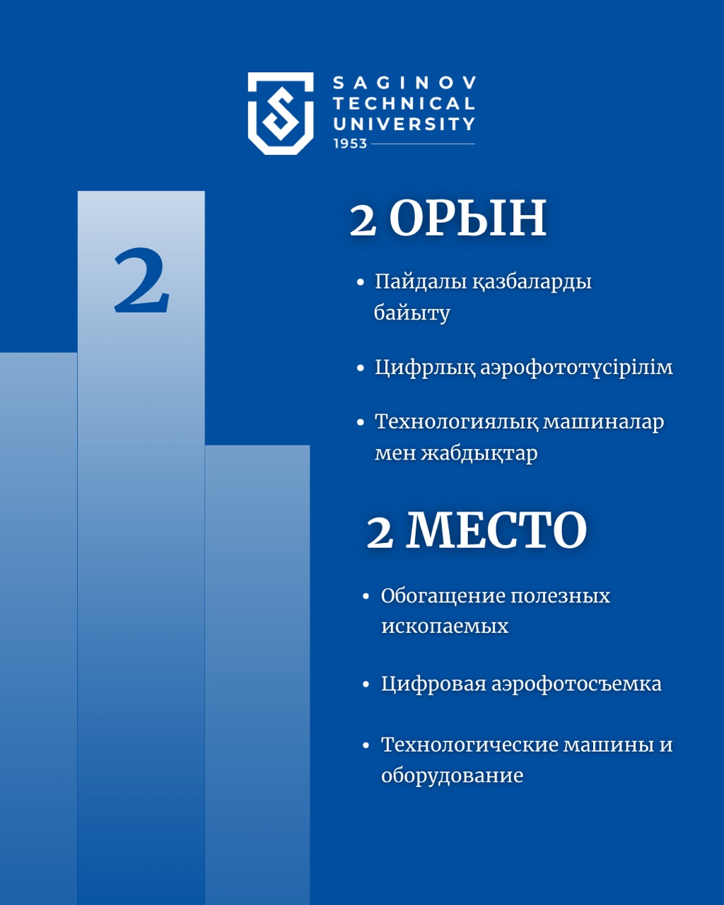 Екінші орынды «Пайдалы қазбаларды байыту», «Цифрлық аэрофототүсірілім», «Технологиялық машиналар мен жабдықтар» білім беру бағдарламалары иеленді.