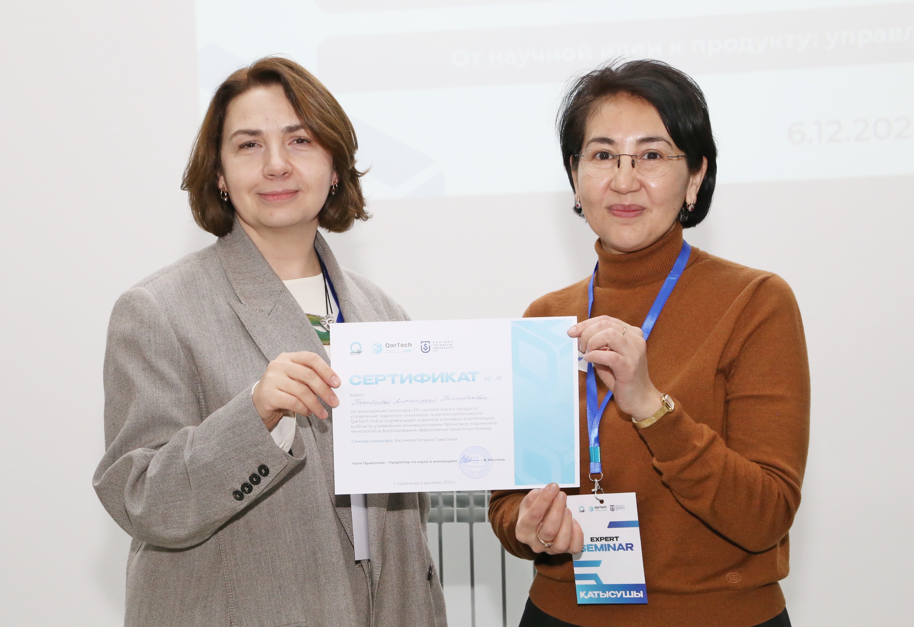 6 желтоқсанда Әбілқас Сағынов атындағы Қарағанды техникалық университетінің базасында QarTech өңірлік инновациялық-индустриялық хабы аясында «Ғылыми идеядан өнімге дейін: басқару, маркетинг және команда» атты эксперттік семинар өтті.