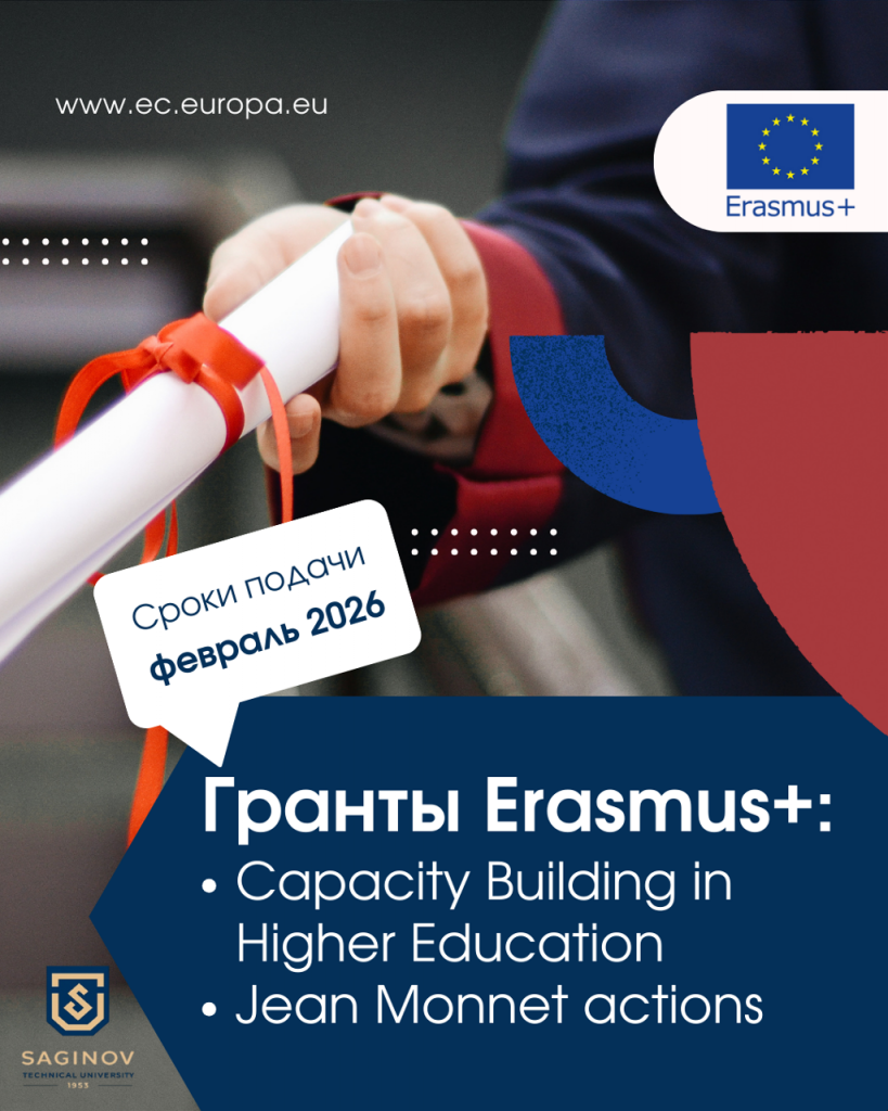 Құрметті әріптестер! Erasmus+ бағдарламалары бойынша өтінімдер қабылдау жалғасуда. Өтінім тапсырудың соңғы мерзімдері: Жан Моне (Jean Monnet Actions): 2026 жылғы 3 ақпан Еуропалық Одақ тақырыбындағы курстарды әзірлеу және оқыту Жоғары білім беру әлеуетін арттыру (CBHE): 2026 жылғы 10 ақпан Білім беру Әрі қарай оқу …