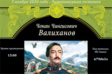 «Литературная гостиная» на тему «Великий ученый, ориенталист, историк, географ, фольклорист, просветитель, востоковед Чокан Валиханов», посвященное 185-летию ученого»