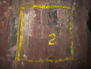 Наблюдения проводились в подземных выработках на горизонте +96 м, на глубине около 250 м. Всего было оборудовано 9 наблюдательных участков (рисунок 1). На каждом участке выделялся фрагмент поверхности размером 1×1 м.