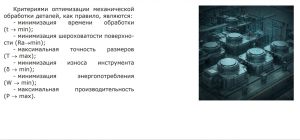 Таким образом, оптимизация параметров технологического процесса механической обработки является одной из ключевых задач в рамках этапа технологической подготовки производства, решение которой способствует повышению эффективности работы промышленного предприятия и поддержания его конкурентоспособности.