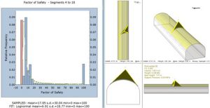 Для повышения надёжности моделирования используется статистическая комбинация методов Монте-Карло и латинской гиперкубической выборки (Latin Hypercube Sampling, LHS), что обеспечивает более полное охватывание диапазона возможных состояний массоцива и позволяет получить статистически обоснованное распределение коэффициента запаса устойчивости (Factor of Safety).