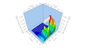 На рисунке 2 представлена трёхмерная диаграмма распределения максимально требуемого давления крепи для достижения коэффициента запаса устойчивости FS = 1.5 в зависимости от направления и угла падения выработки. Диаграмма построена по результатам вероятностного анализа в ПО Unwedge и отображает, как пространственная ориентация трещин влияет на необходимое поддерживающее давление. Максимальные значения давления соответствуют определённым сочетаниям ориентаций клиньев, которые формируют наиболее неустойчивые конфигурации относительно контура выработки.