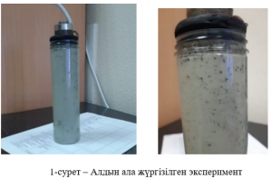 Майлау-салқындату сұйықтықтарын тазалау әдістеріне талдау жүргізілді, патенттер мен өнертабыстарға шолу жасалды, сондай-ақ МСC-ны ультрадыбыспен тазалау кезінде жүретін физикалық процестер (кавитация, коагуляция және шөгінді түзілу) қарастырылды. Ультрадыбыстық әсер ету кезінде жүретін процестерді есептеу әдістемесінің тәуелділіктері алынды. Алдын ала эксперимент жүргізілді (1-сурет). Scopus деректер базасында CiteScore көрсеткіші кемінде 50 процентиль болатын журналға мақала дайындау жұмыстары жүргізілуде. КОКНВО ұсынған отандық рецензияланатын басылымда 1 мақала жарияланды.