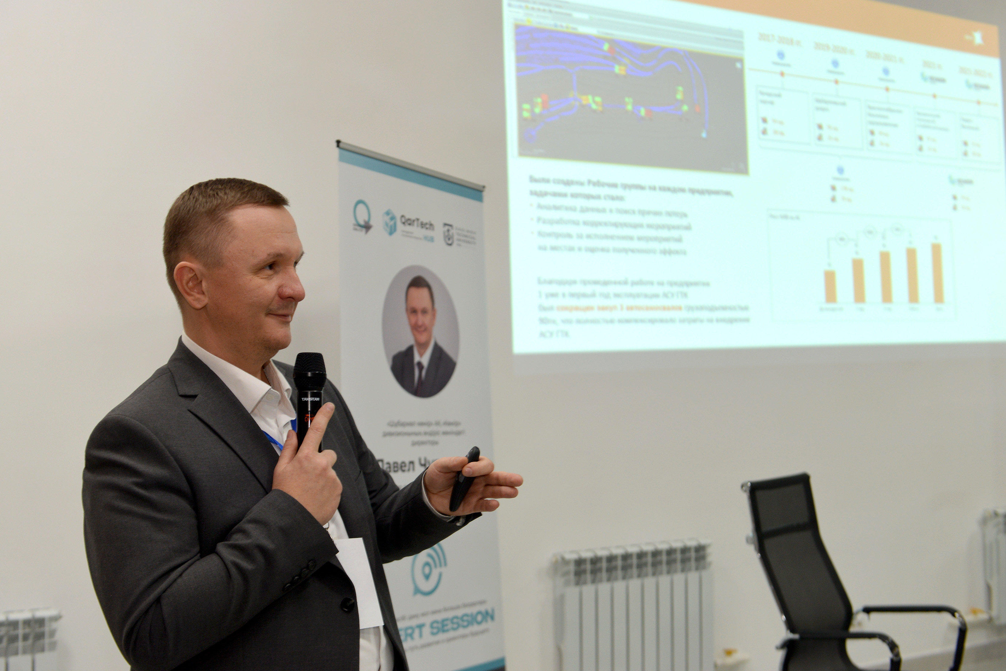 13 қарашада QarTech хабы қызметі аясында Әбілқас Сағынов атындағы Қарағанды техникалық университеті базасында ERG «Көмір» дивизионының өндіріс жөніндегі директоры – Павел Чувашовтың қатысуымен эксперттік сессия өтті. Павел Юрьевич – Saginov Technical University түлегі, оқуды маркшейдер мамандығы бойынша аяқтаған.