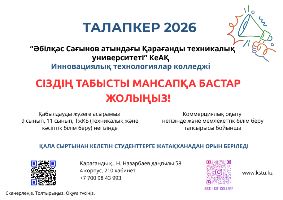 КОЛЛЕДЖГЕ ТҮСУ ҮШІН ҚАЖЕТТІ ҚҰЖАТТАР ТІЗІМІ