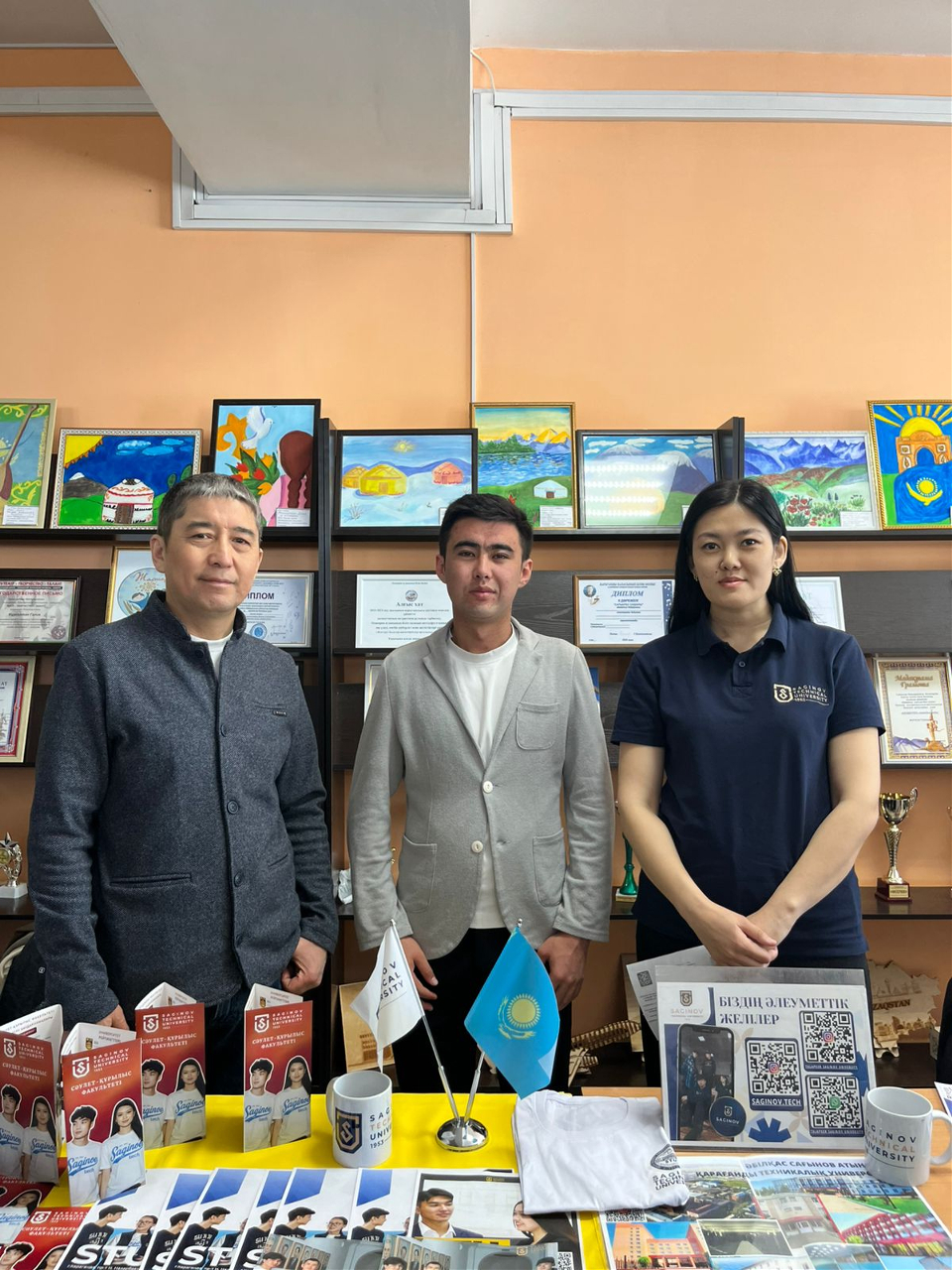 Saginov Technical University Осакаров ауданындағы «Жастар» балалар-жасөспірімдер орталығында өткен мамандықтар жәрмеңкесіне қатысып, кәсіби бағдар беру жұмысын жүргізді. Іс-шараға университет атынан Сәулет-құрылыс факультетінің «Құрылыс материалдары және технологиялар» кафедрасының аға оқытушысы Әбілғазы Рахтаев, «Өнеркәсіптік көлік» кафедрасының магистрі Ақгүл Имангазиева және инженер Нұрлыбек Шаржауов қатысты.