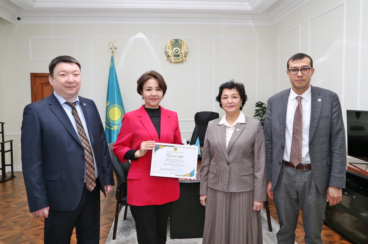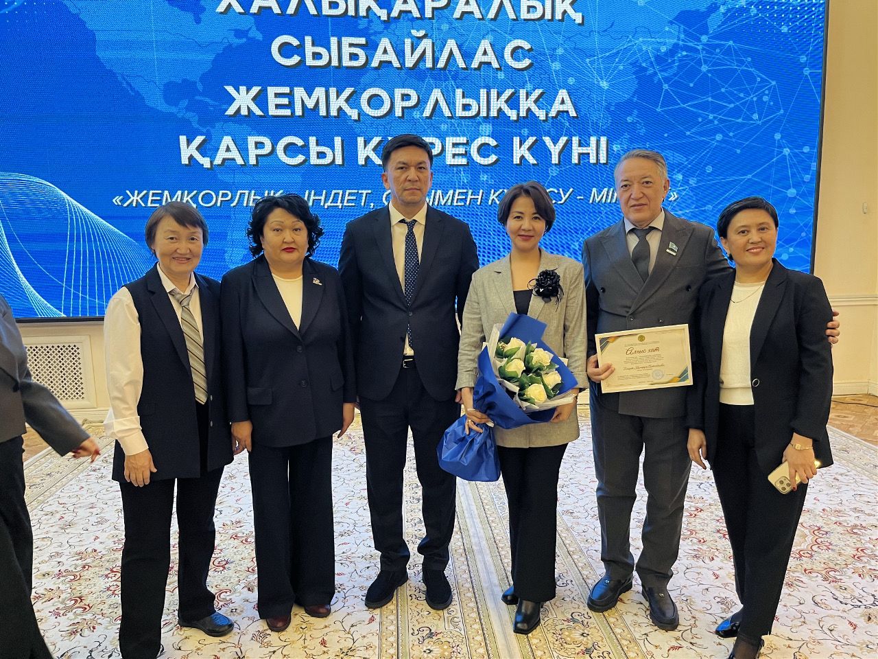 Халықаралық сыбайлас жемқорлыққа қарсы күрес күніне орай, ЖОО-да жемқорлықтың алдын алу бағытында атқарған жұмысы үшін комплаенс-офицер Гүлден Сейдимбекова Қарағанды облысы бойынша Мемлекеттік қызмет істері агенттігінің департаменті тарапынан адалдықты насихаттағаны және қоғамда ізгілікті мәдениетті қалыптастыруға қосқан белсенді үлесі үшін алғыс хатпен марапатталды.
