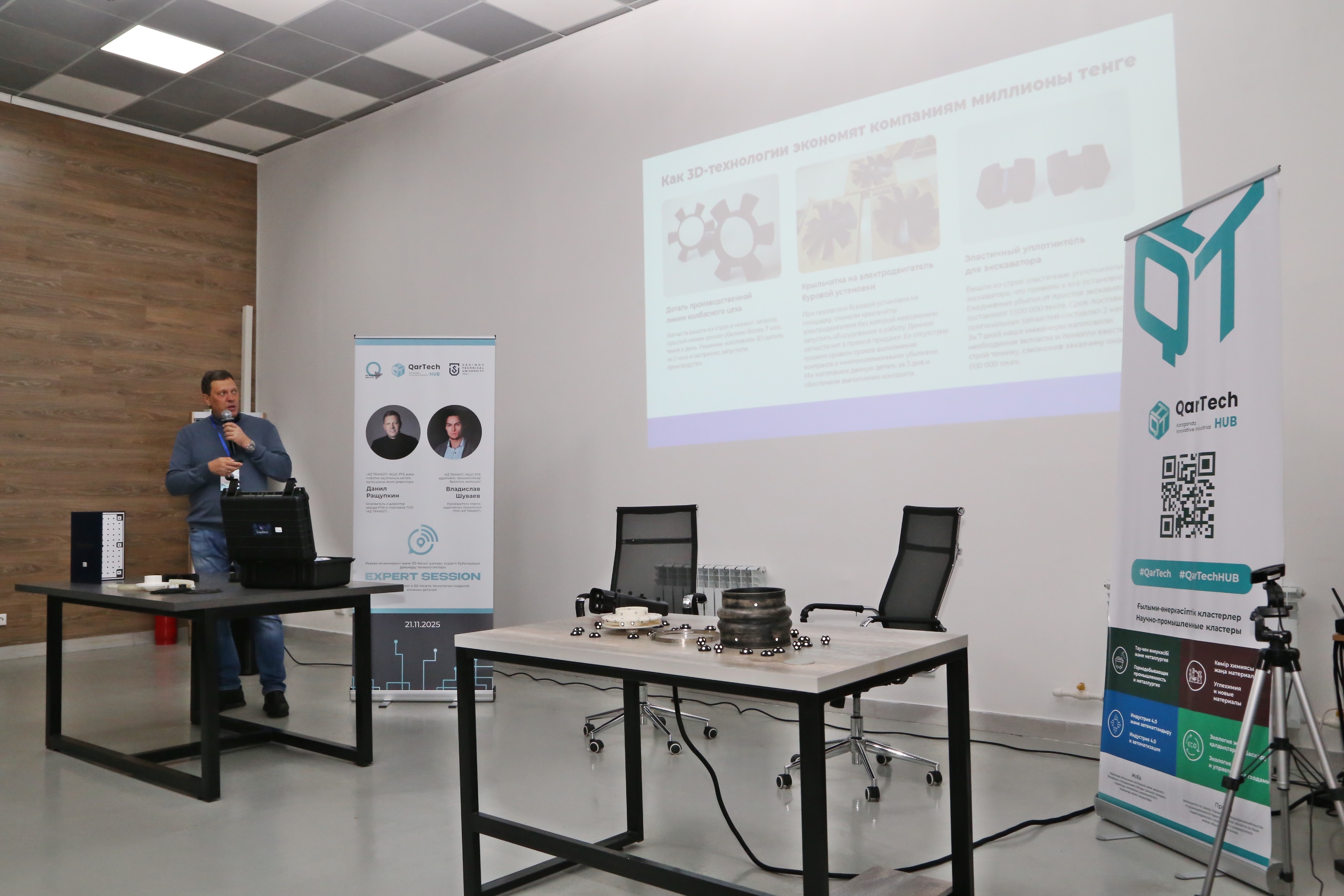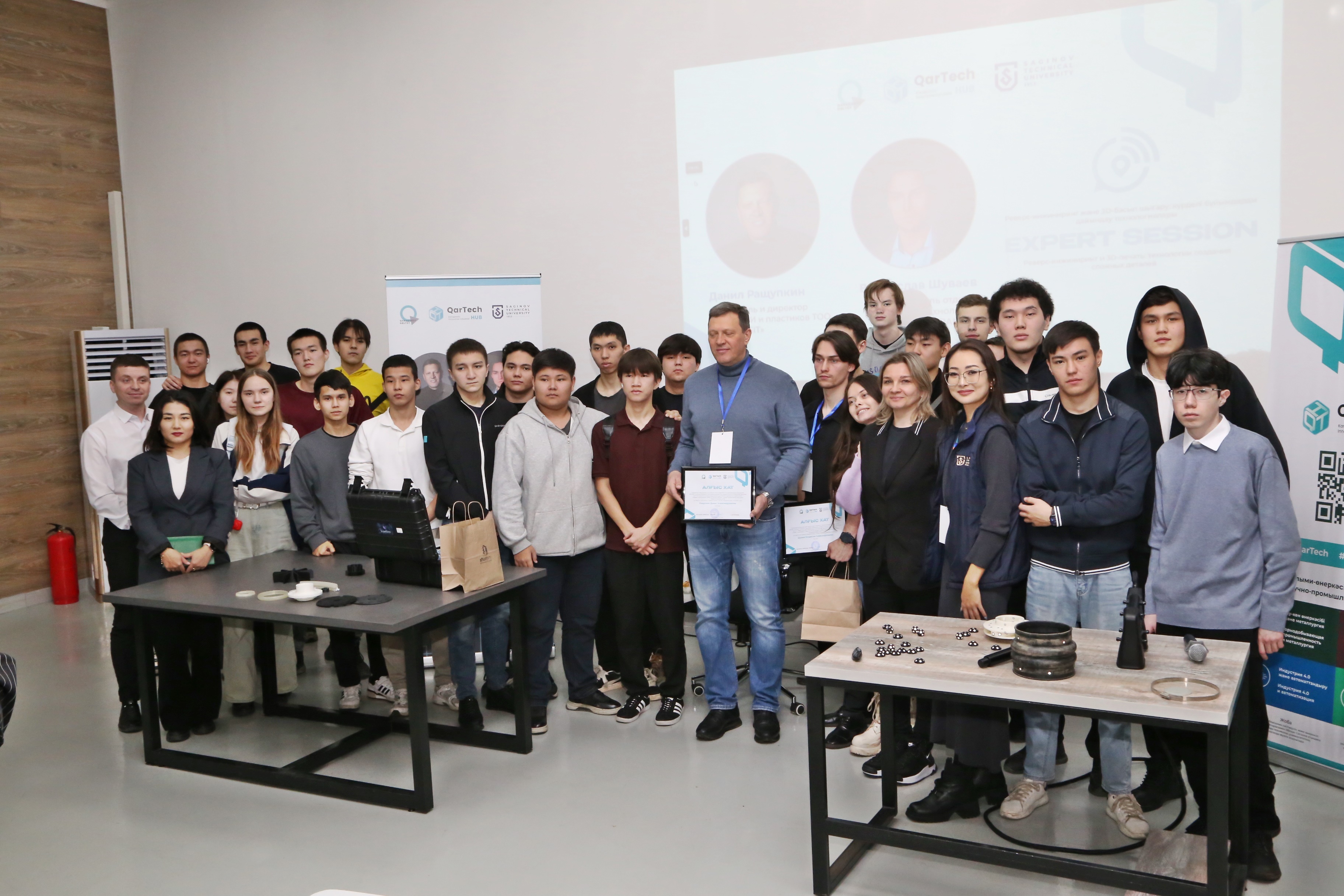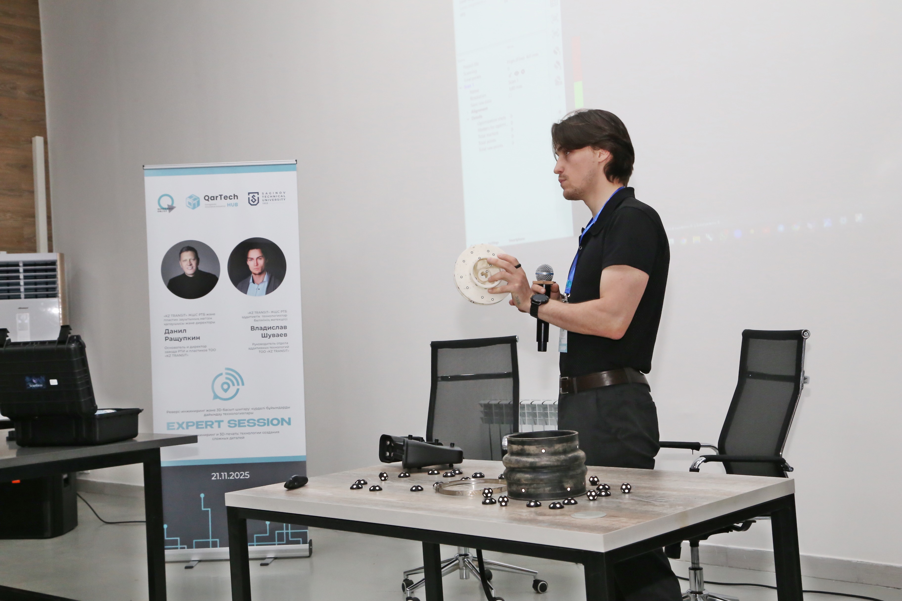 21 қарашада Qartech хабының қызметі аясында Әбілқас Сағынов атындағы Қарағанды техникалық университетінің базасында «KZ TRANSIT» ЖШС РТБ және пластиктер зауытының негізін қалаушы және директоры Данил Ращупкиннің, сондай-ақ кәсіпорынның аддитивті технологиялар бөлімінің басшысы Владислав Шуваевтың қатысуымен эксперттік сессия өтті.