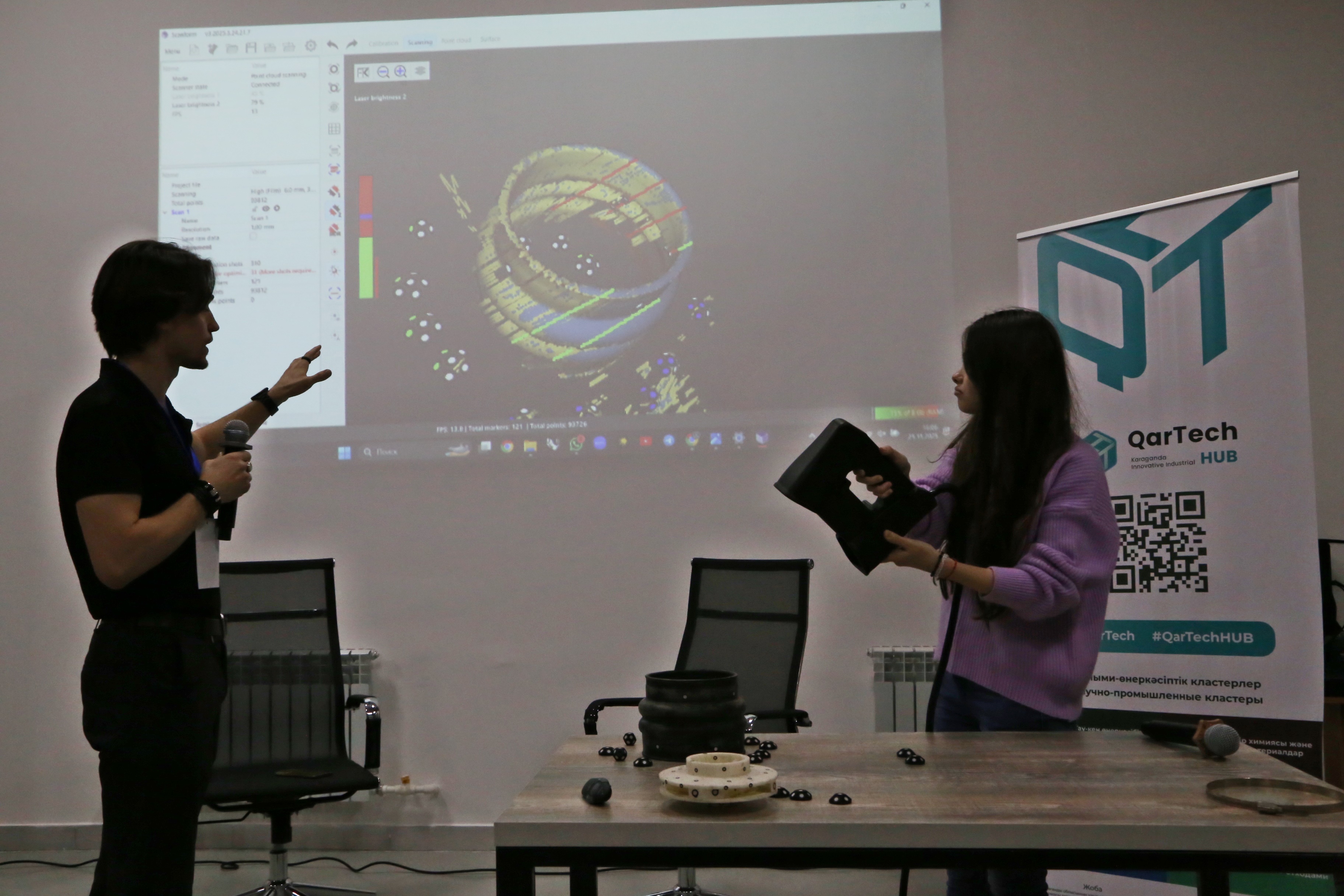 Сонымен қатар, KZ TRANSIT командасы кездесудің практикалық бөлігін өткізді. Қатысушыларға заманауи 3D-сканердің жұмысы көрсетілді, бөлшектің цифрлық көшірмесін алу кезеңдері және реверс-инжиниринг пен 3D-басып шығару үшін модельді одан әрі дайындау көрсетілді.