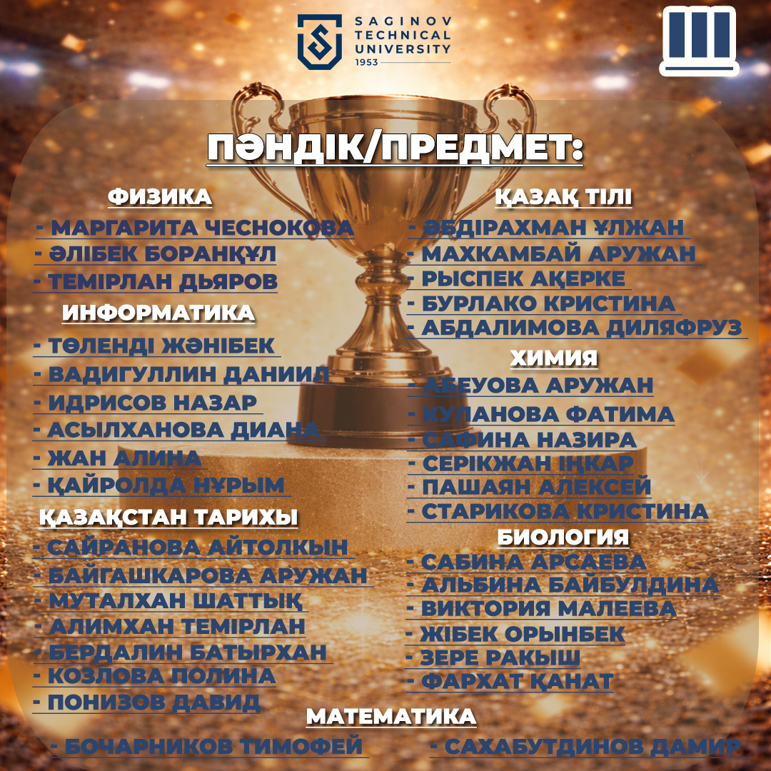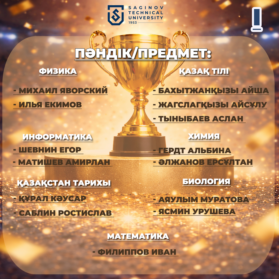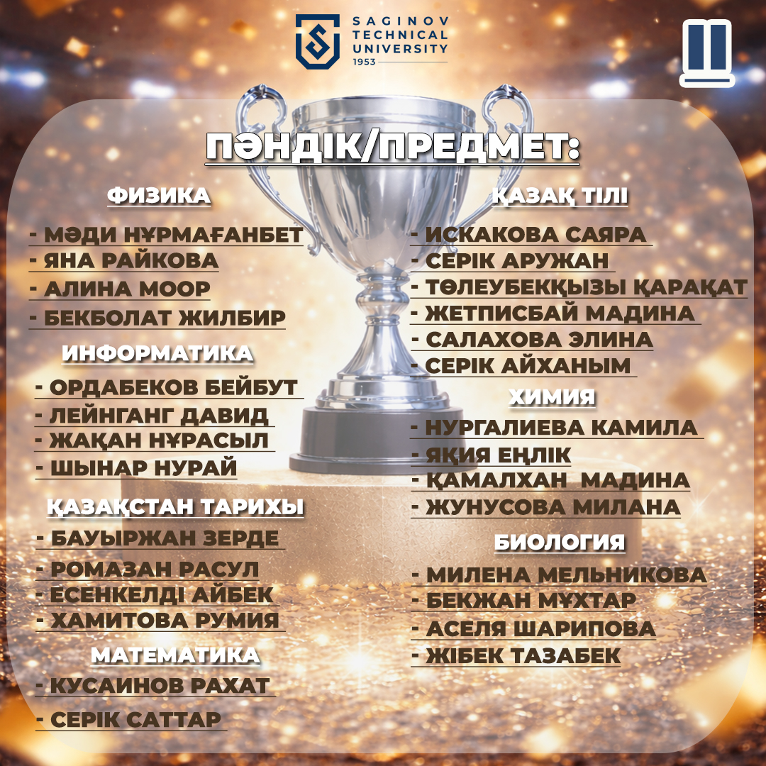 Saginov Technical University-де 11-сынып оқушыларына арналған пәндік олимпиада өтті
