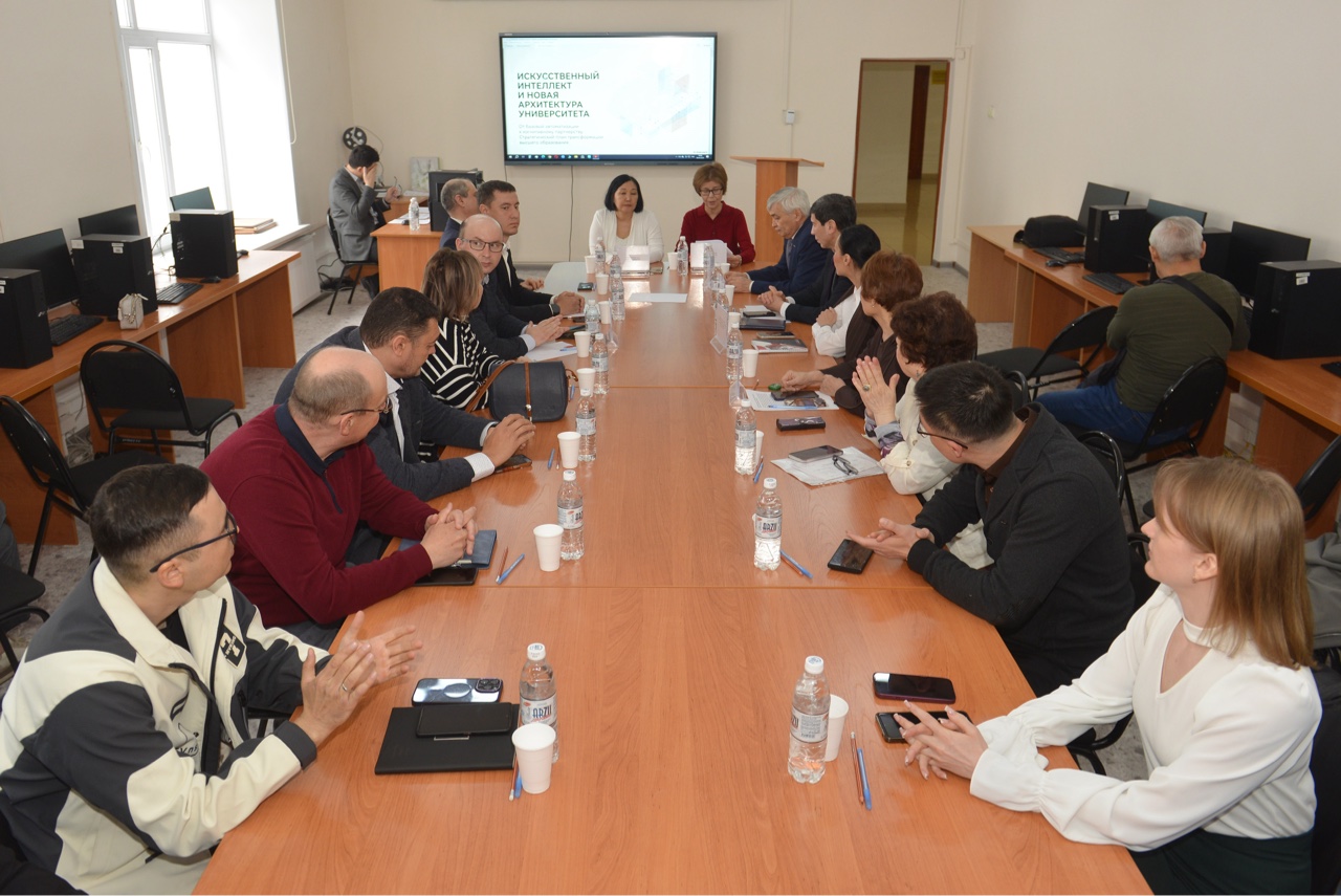 «Құрылыс материалдары және технологиялары» кафедрасының меңгерушісі Еділ Иманов жасанды интеллекттің ғылым мен жоғары білім беру жүйесіне әсері, сондай-ақ оның мүмкіндіктері, тәуекелдері және жаңа оқыту модельдері туралы айтты. ЖИ еліміздің жетекші жоғары оқу орындарында қолдану тәжірибесі туралы шолу баяндаманы ф.ғ.к., «Орыс тілі және мәдениеті» кафедрасының профессордың ассистенті Тамара Кульпеисова жасады. Сәулет-құрылыс факультетінің деканы Данияр Токанов ЖИ технологияларын өндірістік кәсіпорындармен бірлесіп енгізу бойынша атқарылып жатқан жұмыстар туралы баяндады.