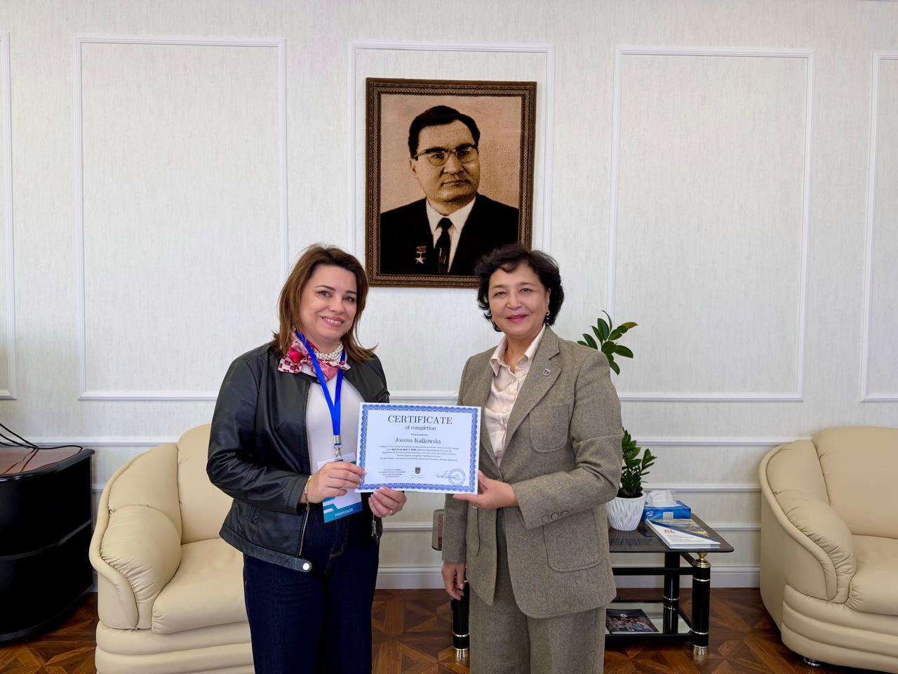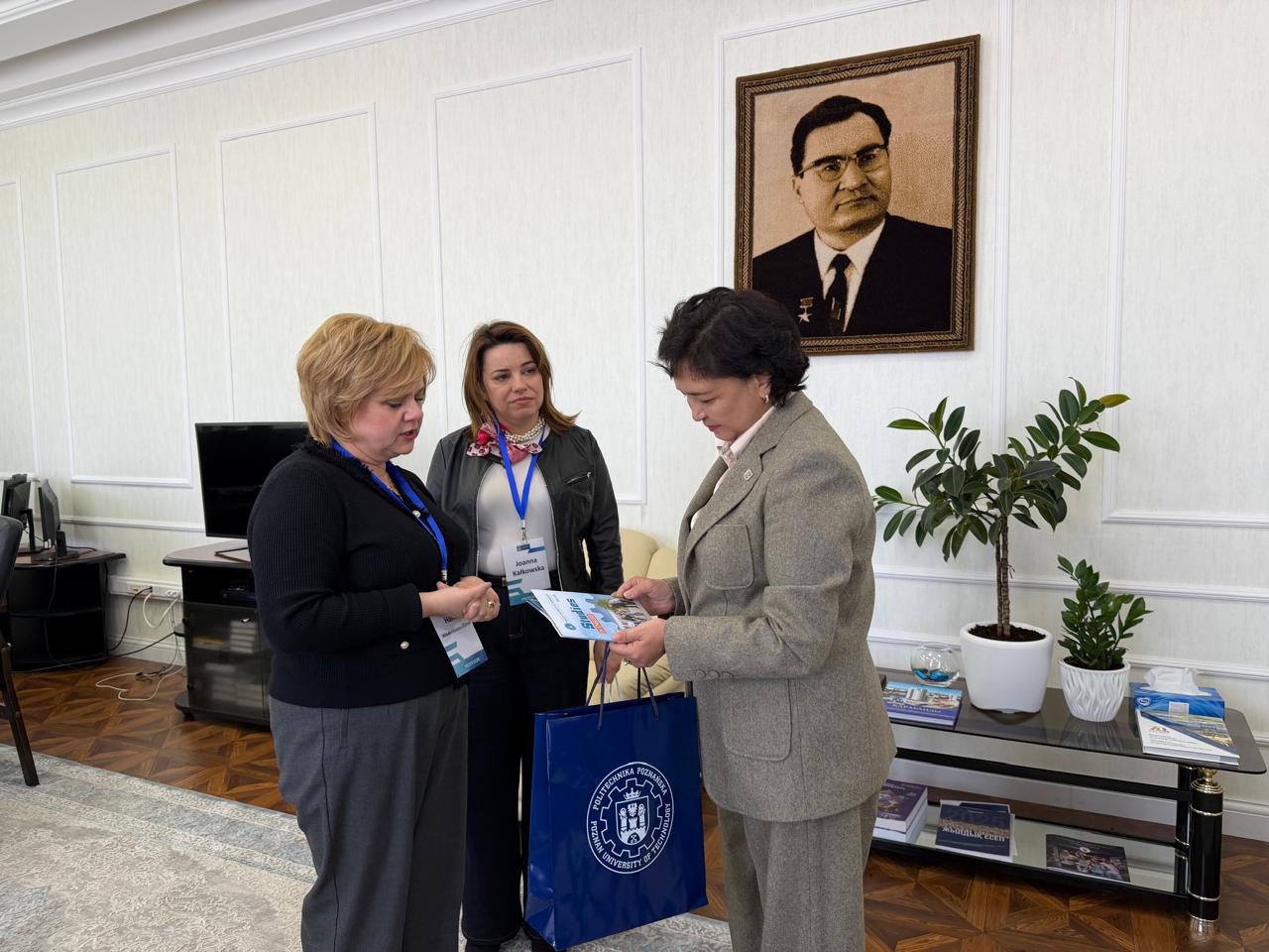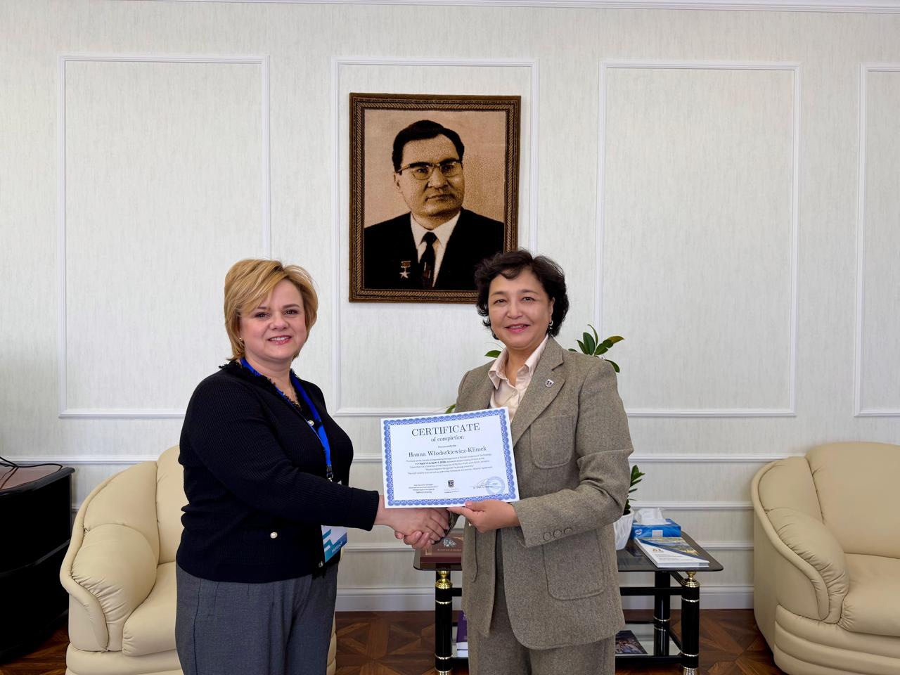 Менеджмент және есептеу жүйелері институтының Инженерлік менеджмент факультетінің профессорлары – экономика ғылымдарының докторы Ханна Влодаркевич-Климек және техникалық ғылымдар бойынша PhD Иоанна Калковска университет қызметімен танысып, «Кәсіпорын экономикасы және менеджменті» кафедрасының профессор-оқытушылар құрамымен бірге «Цифрландыру жағдайында білім беру бағдарламаларын жетілдіру», сондай-ақ олар Көлік, логистика және инженерлік экономика факультеті ұйымдастырған Ғылым күні аясындағы «Көліктегі және инженерлік экономикадағы ғылыми зерттеулер мен практикалық шешімдердің интеграциясы» атты дөңгелек үстел жұмысына қатысты. Бұған қоса олар сабақ өткізіп, онда стратегиялық талдау жүргізу, тұрақты даму мәселелері, ұйымның миссиясы мен мақсаттарын айқындау, сондай-ақ бизнес-стратегияларды әзірлеу сияқты өзекті тақырыптар қарастырылды.