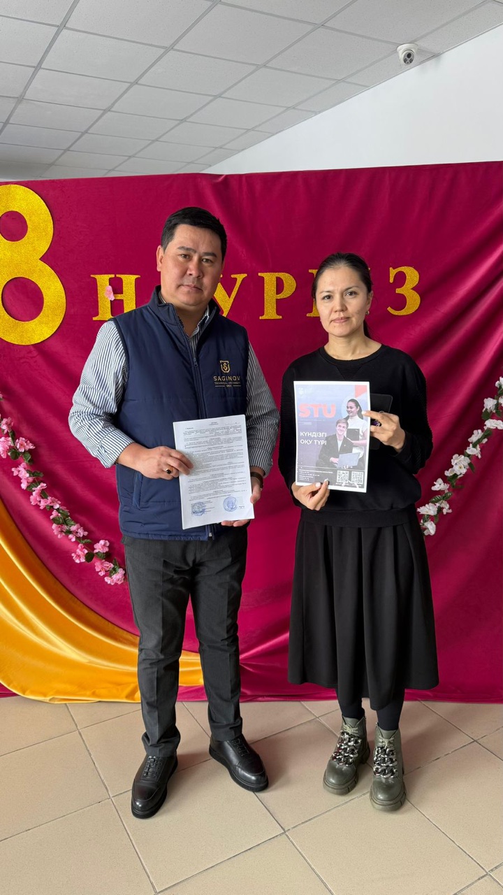 В рамках работы по профессиональной ориентации представители STU провели встречу с выпускниками 9–11 классов и студентами колледжа Шетского района. Во время встречи учащимся была предоставлена полная информация о университете и колледже, образовательных программах, формате обучения, грантах и требованиях к поступлению. Также в ходе встречи было подписано соглашение о сотрудничестве с КГУ «Шетский агротехнический колледж» и школами района. В рамках меморандума студентам колледжа предоставляется 10% скидка при поступлении в Saginov Technical University. Кроме того, на основе меморандума стороны будут совместно работать в области образования, профессиональной ориентации и академического сотрудничества.