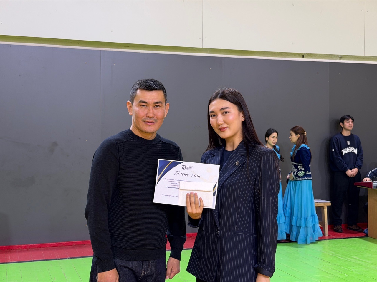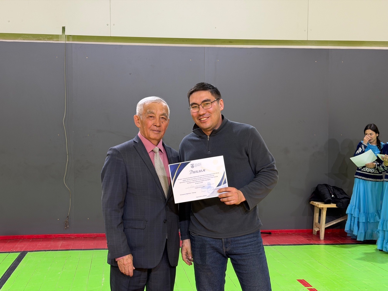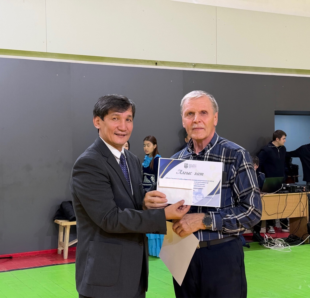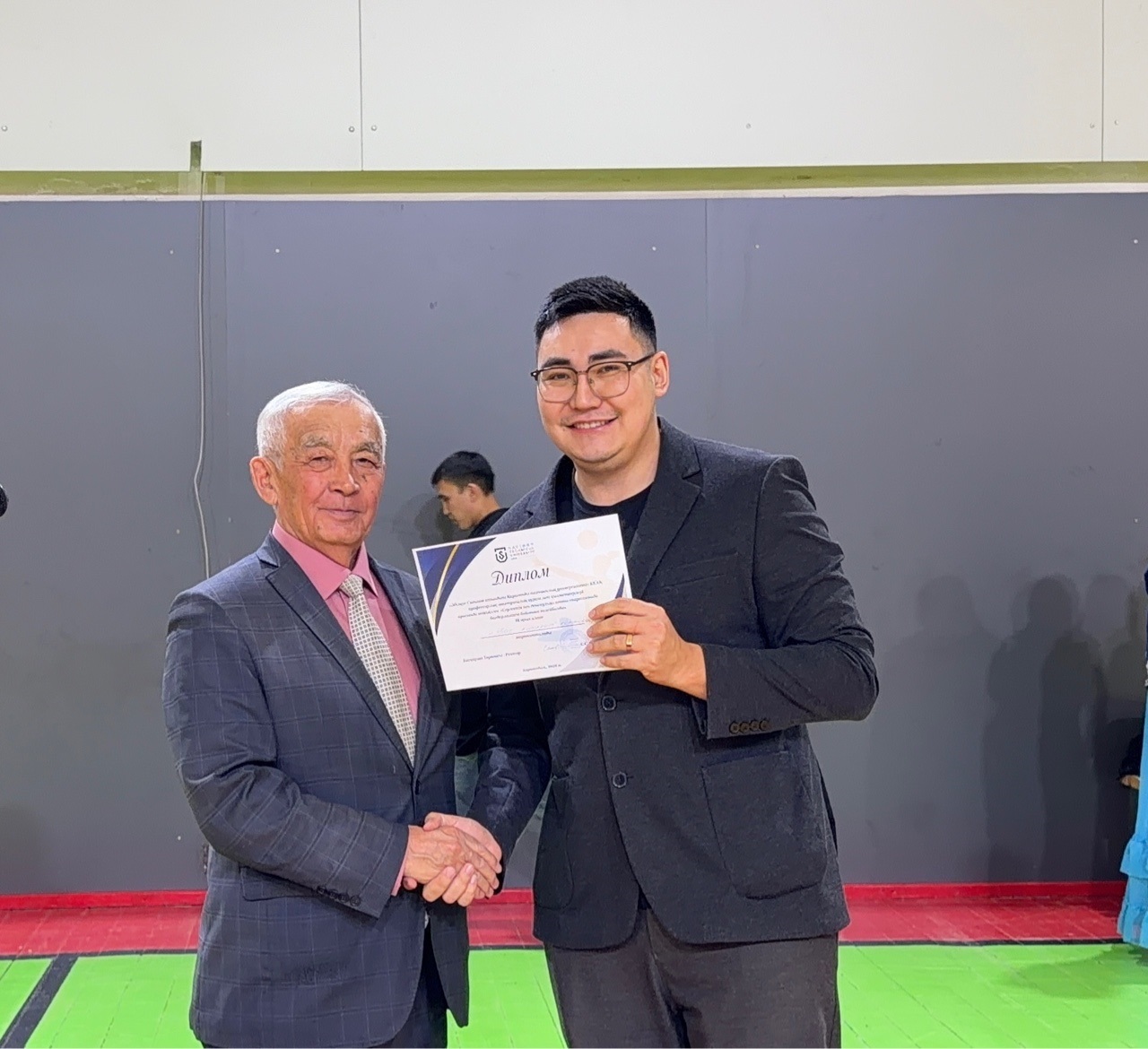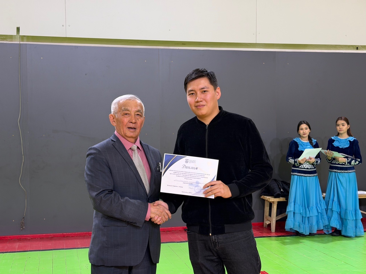Сондай-ақ дене тәрбиесі кафедрасының меңгерушісі Рустем Окашев ең белсенді он қатысушыға грамоталарды табыс етті:
