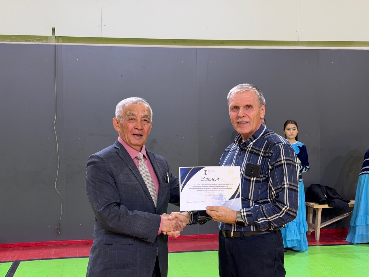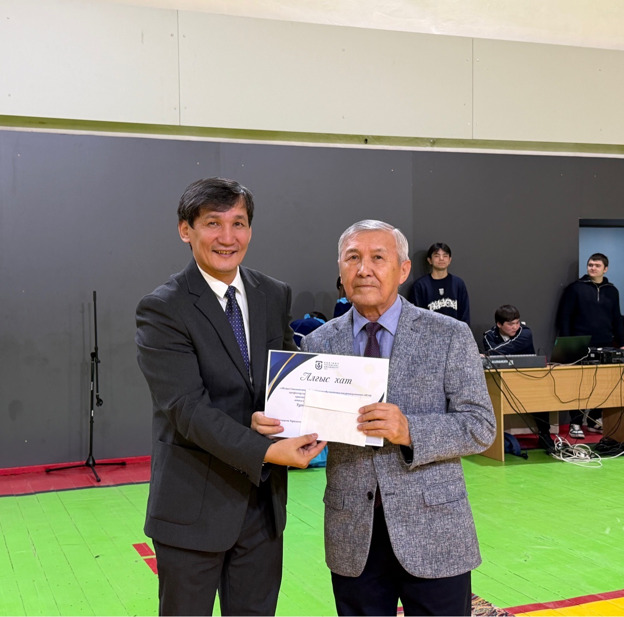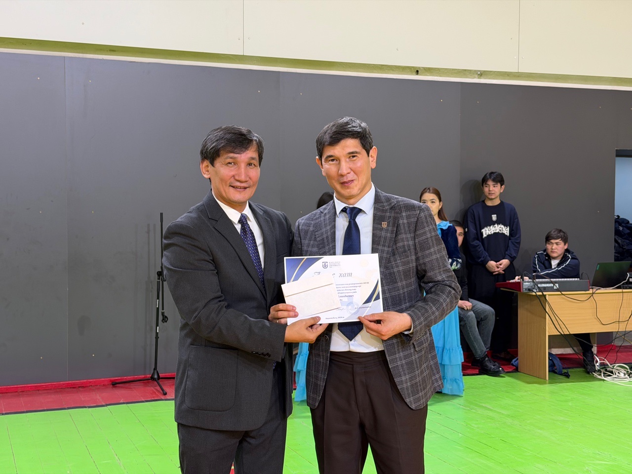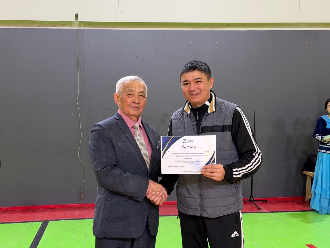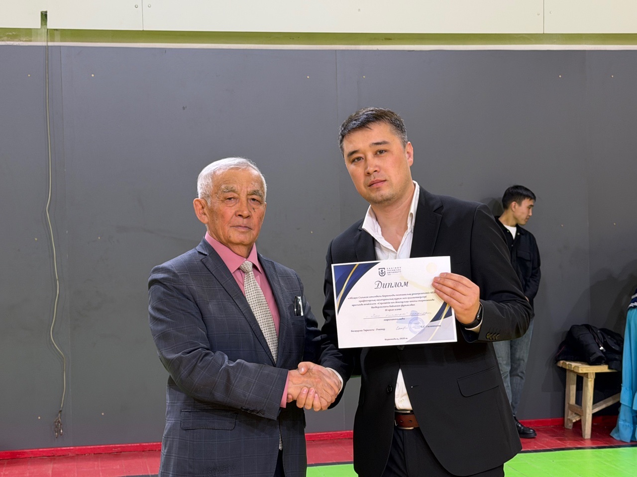 Сондай-ақ дене тәрбиесі кафедрасының меңгерушісі Рустем Окашев ең белсенді он қатысушыға грамоталарды табыс етті: