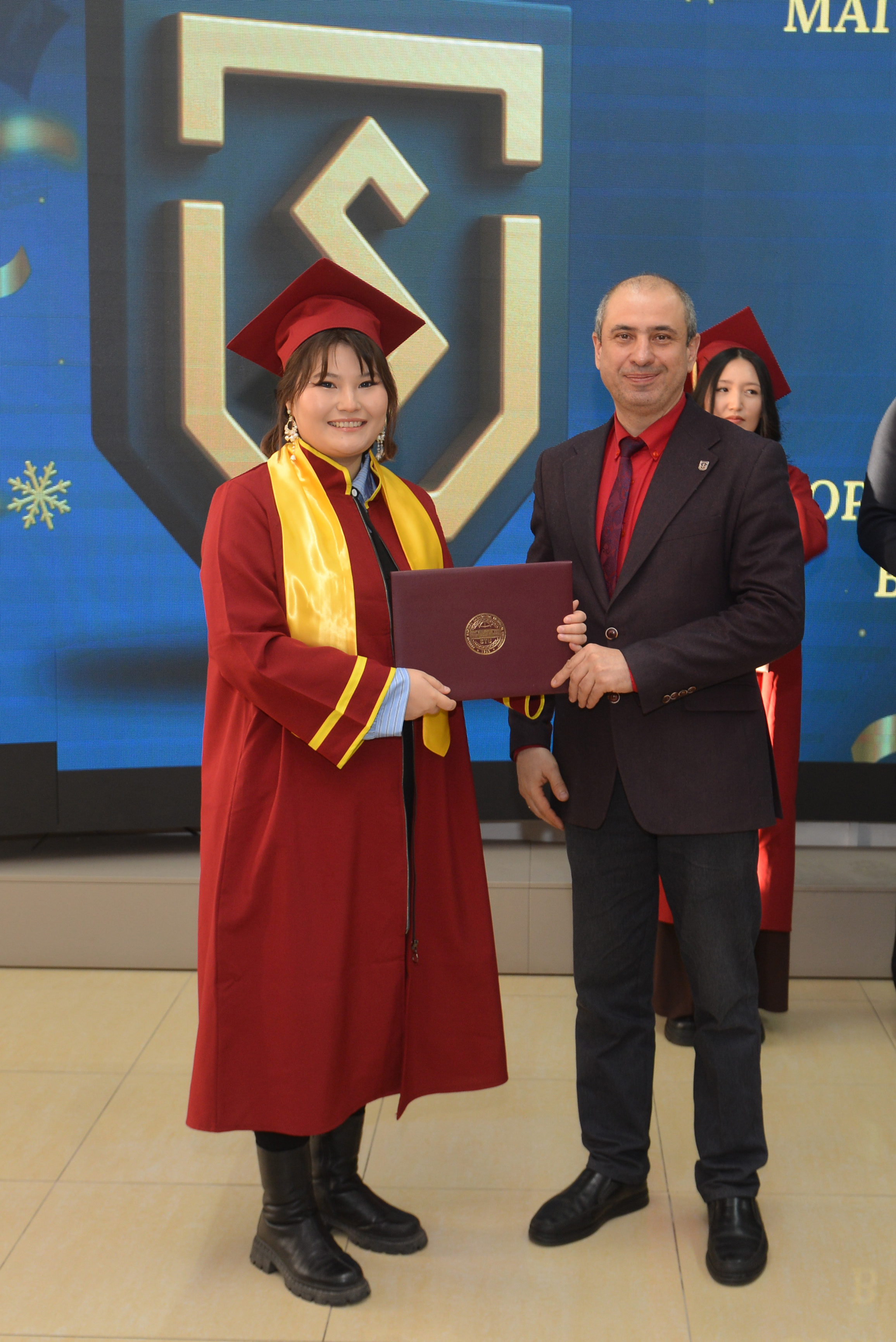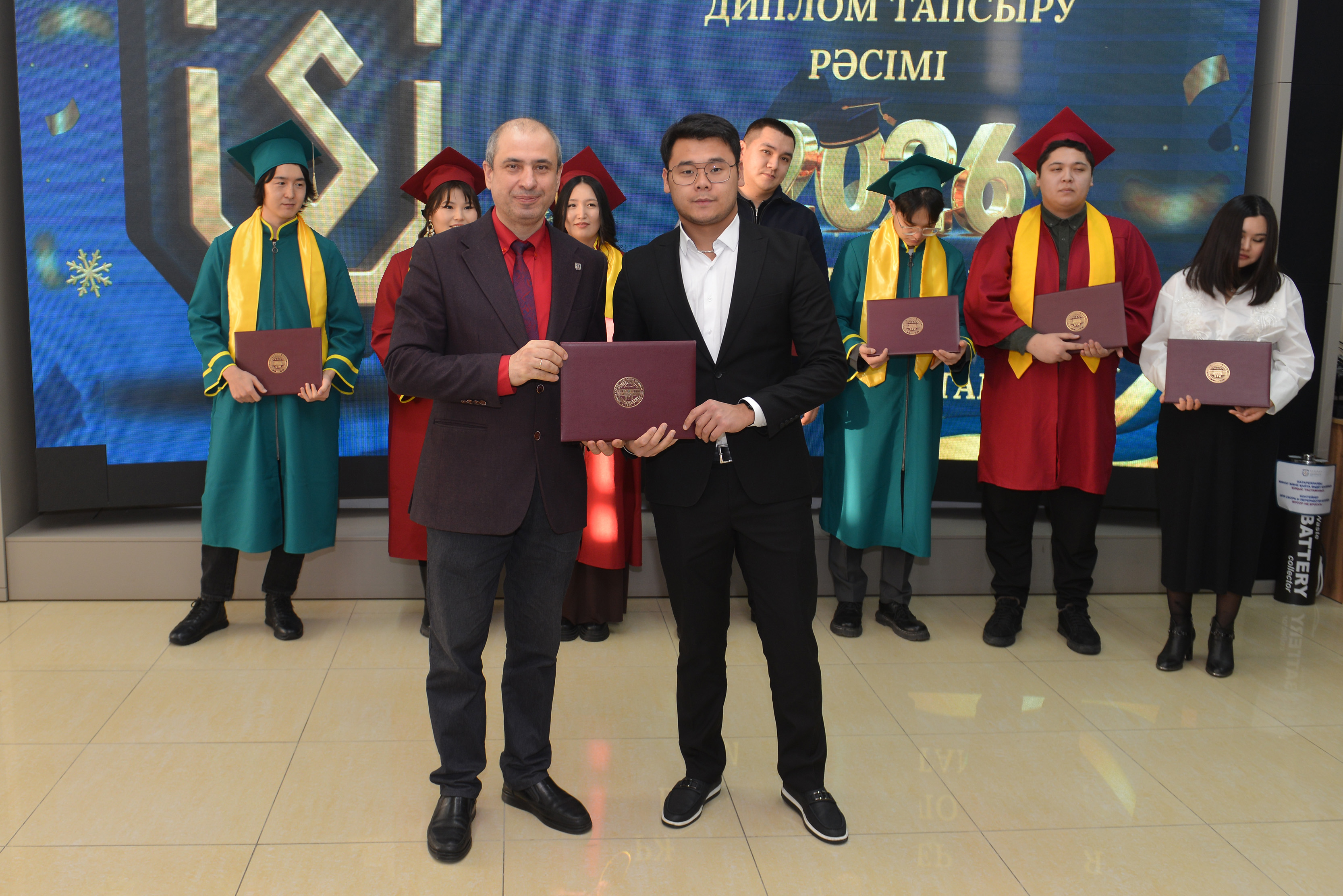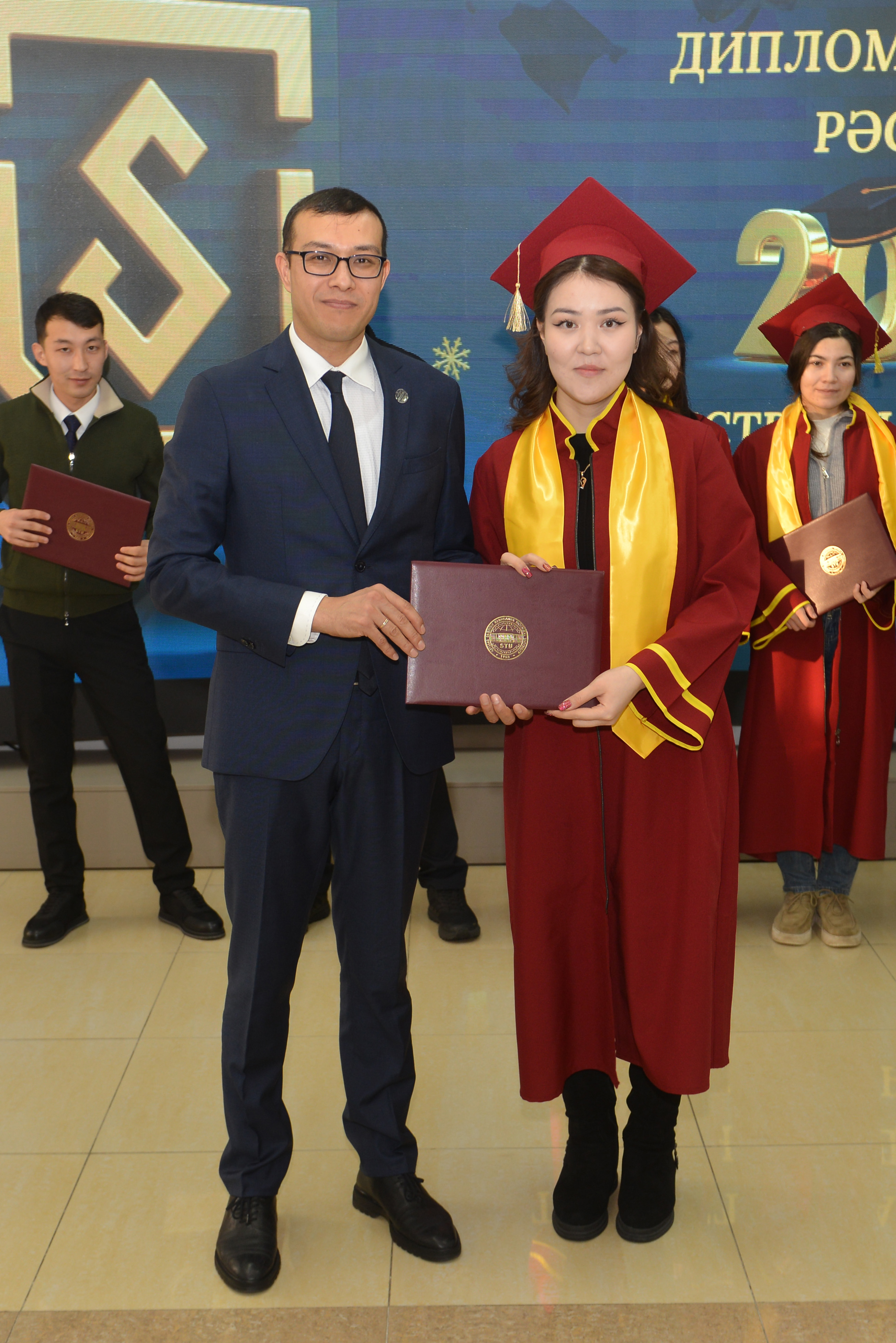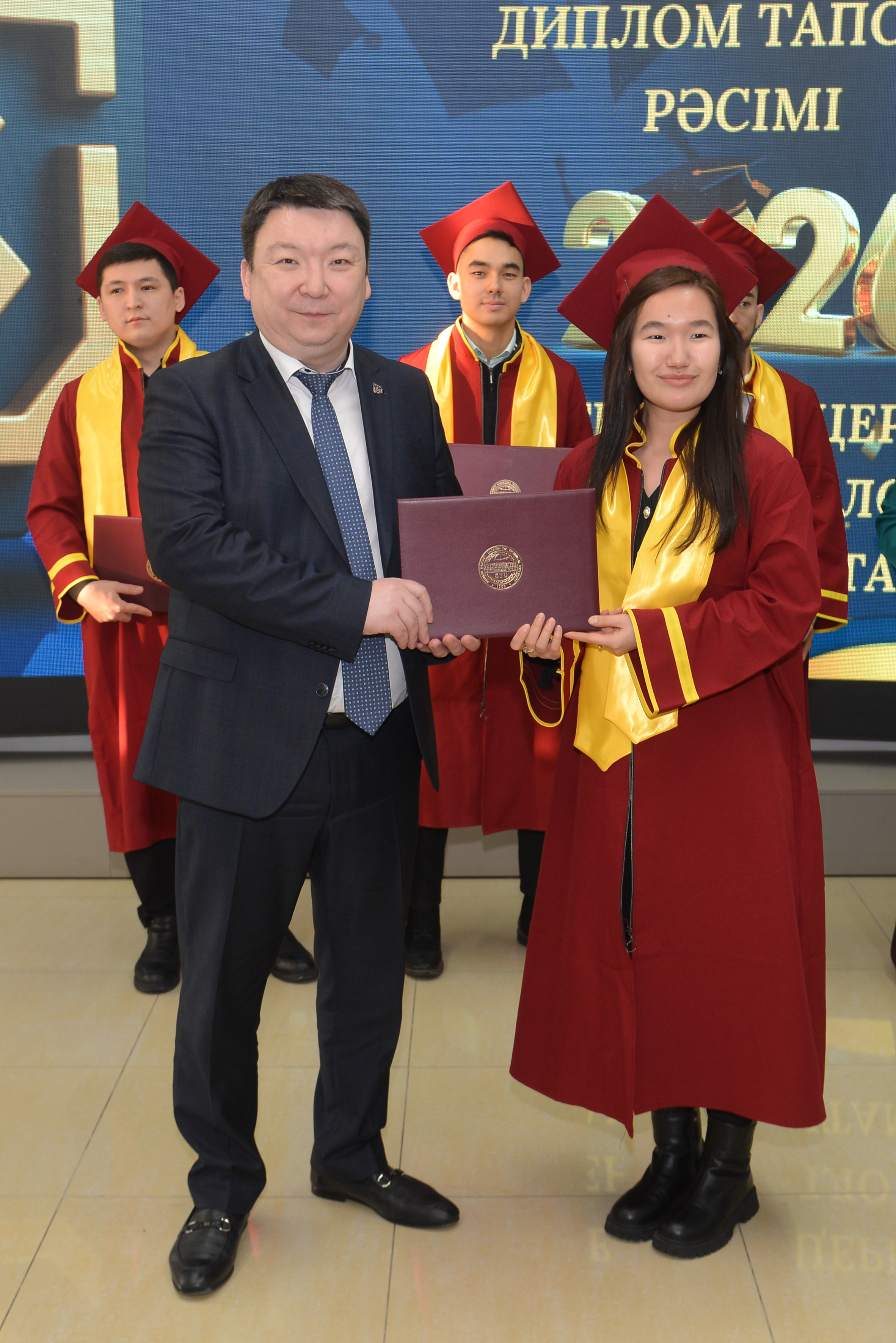 В церемонии приняли участие члены Правления университета: проректор по стратегическому развитию и интернационализации Тимур Канапьянов, проректор по науке и инновациям Али Мехтиев, проректор по цифровизации Азамат Амиров, проректор по социально-воспитательной работе Абай Калыков. В ходе вручения дипломов выпускникам-магистрантам они выразили пожелания профессиональных успехов, успешного применения полученных в университете знаний на практике, достижений в инженерной и научной деятельности, а также уверенность в том, что их профессиональные достижения внесут вклад в развитие страны.