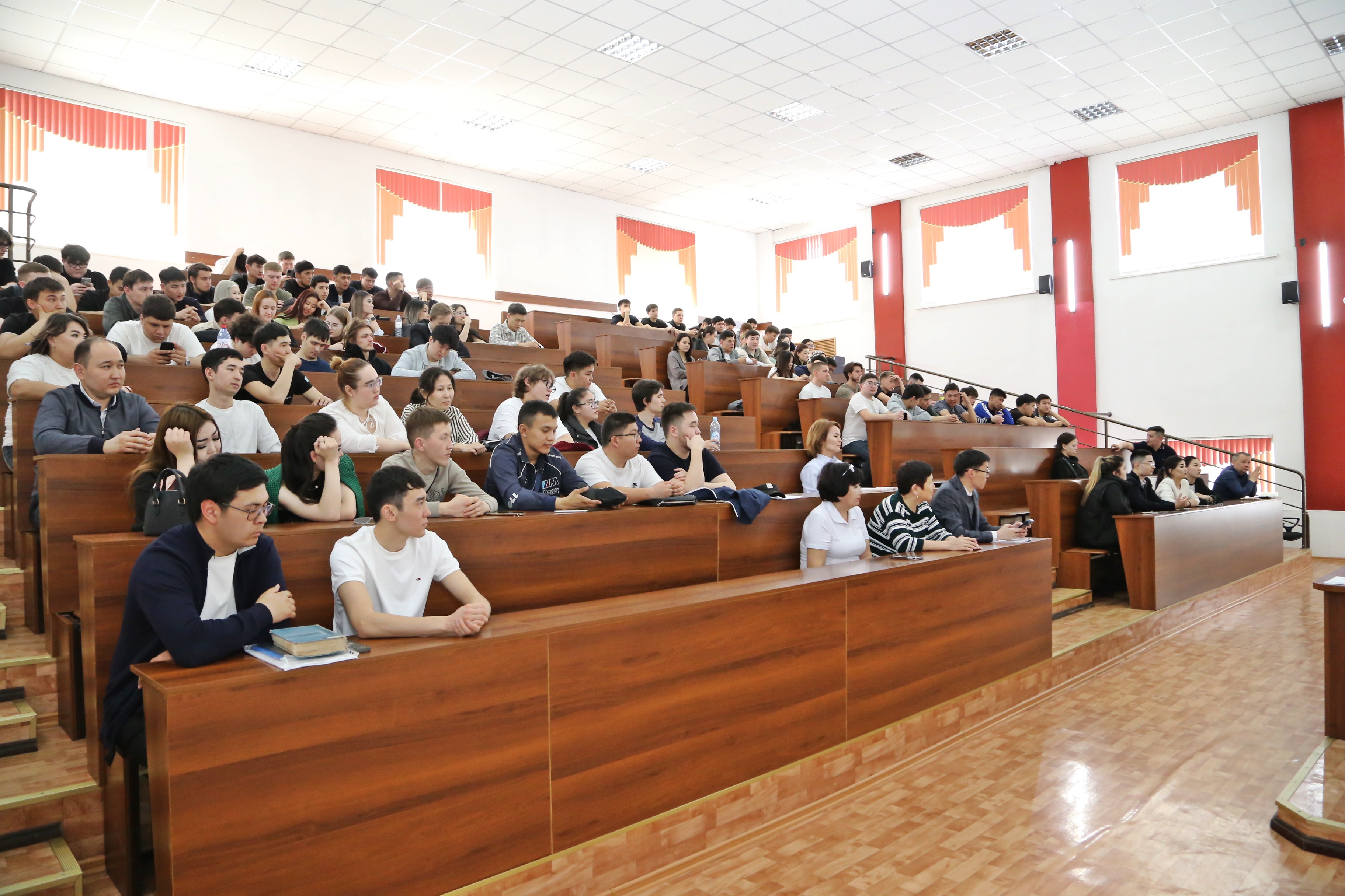 В мероприятии приняли участие член Правления – Проректор по социально-воспитательной работе А.К. Калыков, руководитель отдела маркетинга и профориентационной работы Ж.Г. Ибрайбеков, заместитель ответственного секретаря приемной комиссии по магистратуре и докторантуре Н.Г. Амантаев, а также деканы факультетов и профессорско-преподавательский состав. Встреча прошла в открытом формате, участники свободно обменялись мнениями со студентами.
