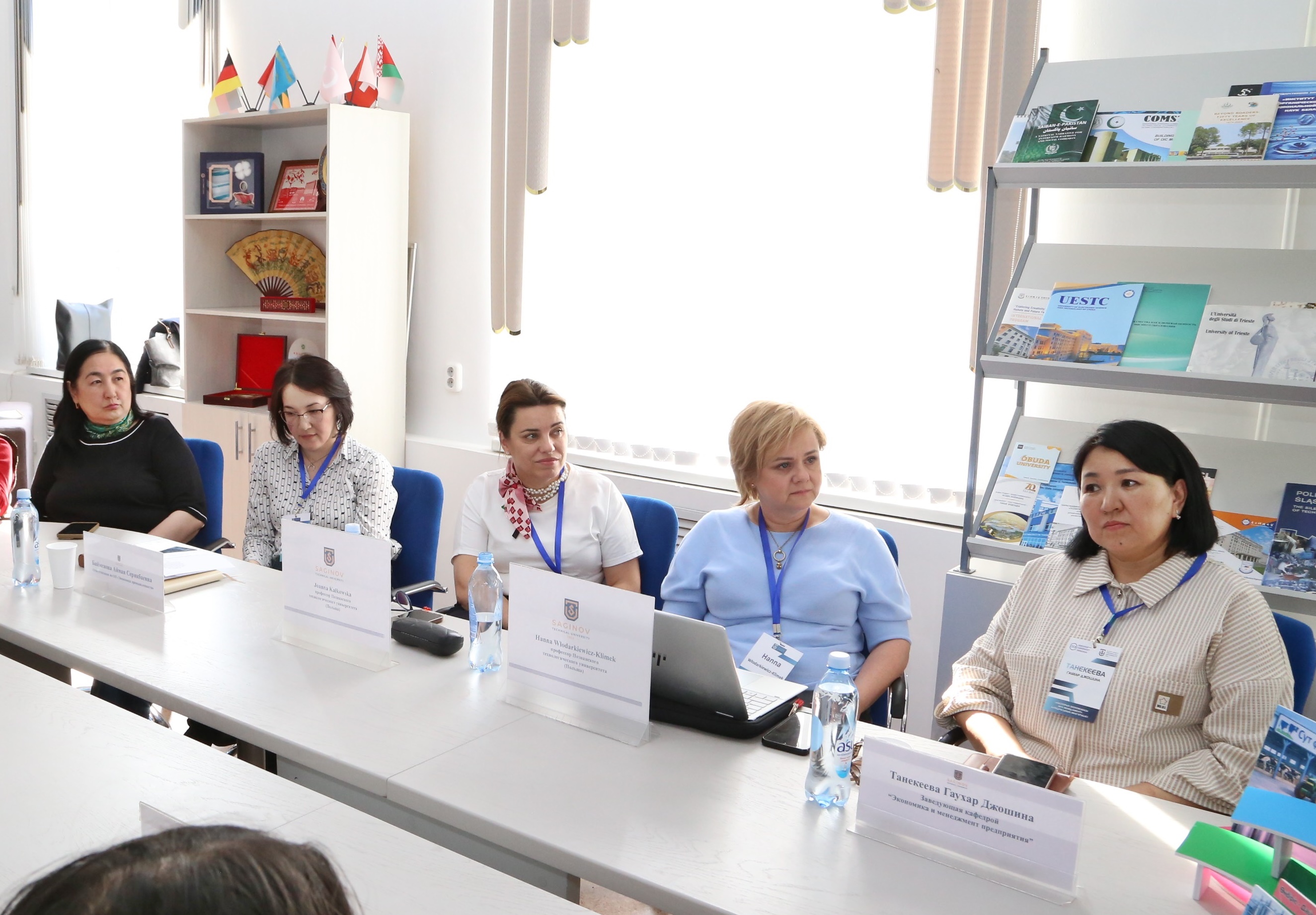 Заведующая кафедрой Гаухар Танекеева представила гостей – зарубежных экспертов, преподающих у себя дома на факультете Инженерного менеджмента. Факультет занимается подготовкой кадров по ряду близких специальностей, выпускаемых нашей кафедрой. Это выяснилось в ходе сообщений, с которыми выступили на круглом столе ответственные по образовательным программам: «Экономика промышленности» — Айман Байменова; «Маркетинг в отраслях промышленности» — Айымгуль Минишева; «Оценка (по отраслям)» — Николай Лустов; «Учет и аудит в промышленности» — Перизат Бузаубаева; и другие.